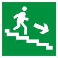 Знак самоклеющийся E13 "Направление к эвакуационному выходу по лестнице вниз направо" 200Х200